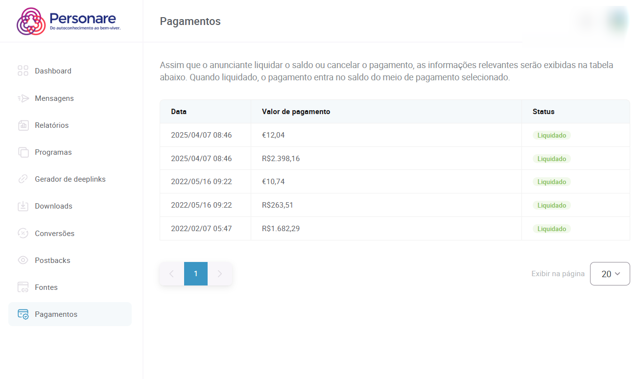Posso acompanhar o status dos meus pagamentos no Painel de Afiliados Personare?